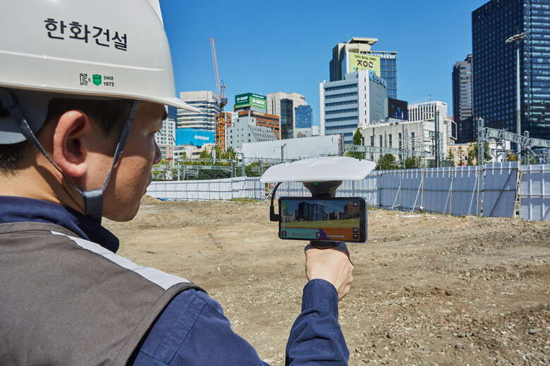 또한 이날 한화건설은 GNSS(Global Navigation Satellite System)기반 AR 기술을 시연했다. 한화건설 직원들은 핸드폰을 활용해 증강현실로 구현된 BIM(Building Information Modeling) 모델을 실제 부지 위에 겹쳐 보면서 현장 부지를 확인했다. 이동한 위치에 매칭되는 BIM 모델을 통해 3D 스캔 전 대지 경계선을 확인했으며, 설계안을 검토하고 공사계획을 수립하는 등 업무 효율을 높였다.
