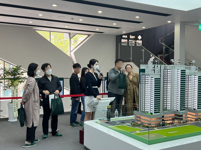 어머니와 함께 견본주택을 방문한 30대 A씨는 “위치는 나무랄 데가 없고, 내부 평면이나 옵션도 다양하게 선택할 수 있어 좋은 것 같다.”며, “오래 전부터 눈여겨보고 있던 위치라 오픈 소식을 듣고 상담을 받기 위해 모델하우스를 찾았다.”고 말했다. 이어 “중도금 부담이 없는 것도 장점이라 긍정적으로 고민하고 있다.”고 덧붙였다.