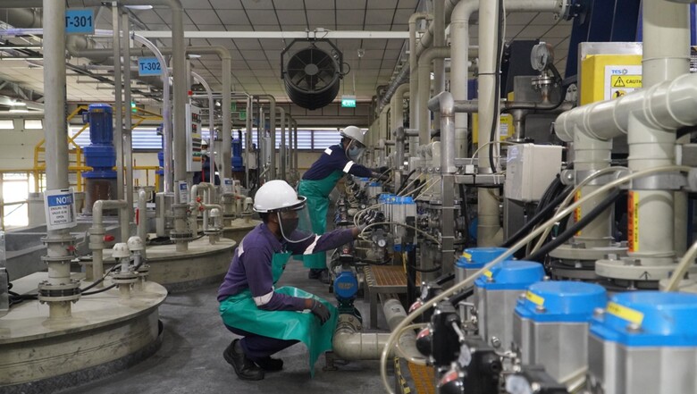 | ▲SK에코플랜트 자회사 테스의 싱가포르 사업장에서 작업자들이 폐배터리 리사이클링 설비를 점검하는 모습. 테스가 누적 처리한 리튬배터리 양이 6000톤을 돌파했다. 테스는 글로벌 네트워크는 물론 수거-전처리-후처리 등 폐배터리 리사이클링 전 과정에 대한 역량을 기술과 역량을 축적하며 향후 본격 개화가 예상되는 전기차 폐배터리 시장 선점에 속도를 내고 있다.<사진제공=SK에코플랜트> |