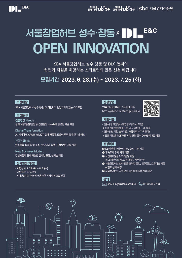 DL이앤씨 관계자는 “혁신적인 기술과 참신한 아이디어를 보유한 스타트업의 많은 참여를 기대한다”고 밝히며 “잠재력 높은 스타트업을 발굴하고 지원해 DL이앤씨와 함께 성장하는 상생의 파트너십을 구축할 것” 이라고 전했다.