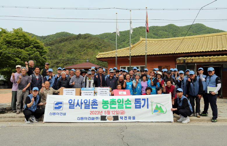 신동아건설은 지난 12일 일사일촌 자매결연을 맺고 있는 강원도 영월군 덕상2리 덕전마을을 찾아 일사일촌 봉사활동을 펼쳤다고 밝혔다. 이번 봉사활동은 코로나 팬데믹 이후 4년 만에 대면으로 이뤄졌다.