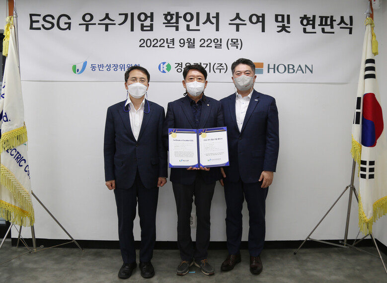 김한정 경우전기 대표이사는 “ESG 우수 중소기업의 대표사로 선정되어 기쁘게 생각한다”며 “대내외적으로 어려운 경영상황이지만, ESG경영에도 계속 관심을 갖고 노력하겠다”고 말했다.