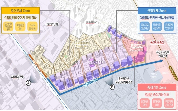 서울 금천구 가산동 국가산업단지(G밸리) 일대가 지구단위계획 재정비를 통해 산업과 상업, 주가가 어우러진 복합산업 중심지로 개발된다.