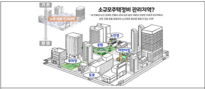 관리지역 제도는 노후·저층 주거지의 난개발을 방지하고 소규모주택정비사업의 체계적 정비를 위해 도입된 것으로, '빈집 및 소규모주택 정비에 관한 특례법' 개정시행(’23.10.19.)에 따라 일반 주민도 관리계획 수립을 제안할 수 있게 되었다.