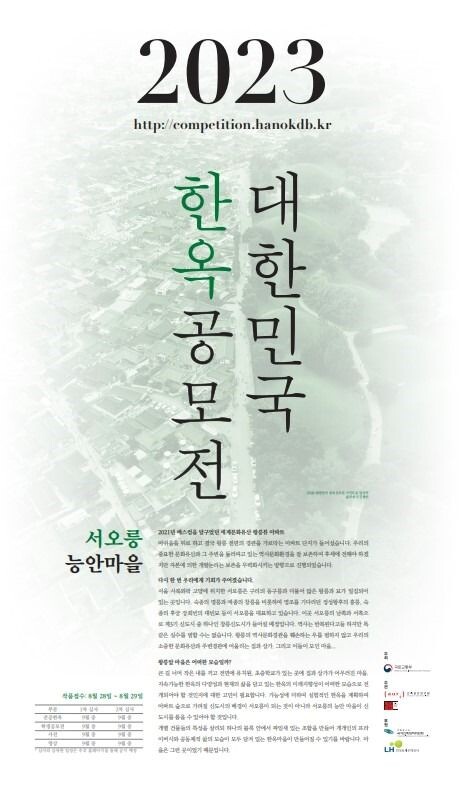 이정희 국토부 건축정책관은 "한옥의 우수성과 가치를 널리 알릴 수 있는 '2023 대한민국 한옥공모전'을 통해 한옥이 현대적 편의성을 두루 갖춘 일상 속 주거 공간으로 발전할 수 있도록 많은 참여를 바란다"고 전했다.