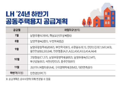 ▲LH 2024년 하반기 공동주택용지 공급계획. 그래픽=LH 제공
