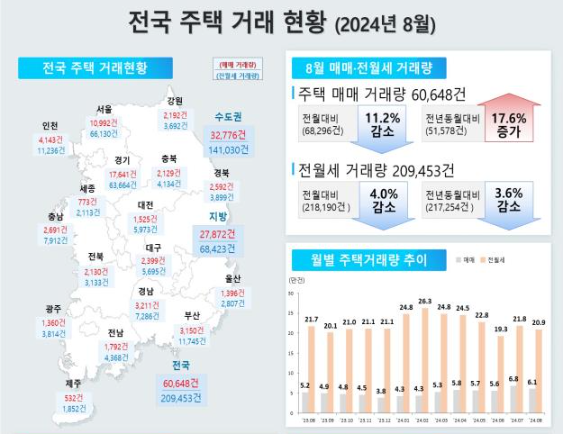 | ▲2024년 8월 주택거래 현황. 그래픽=국토부 제공 |