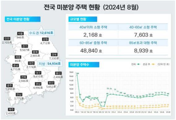 | ▲2024년 8월 전국 미분양 주택 현황. 그래프=국토부 제공 |