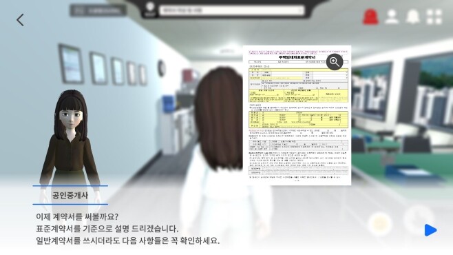 | ▲메타버스 서울서 제공하는 '부동산계약 체험하기' 서비스 화면 갈무리. 사진=서울시 제공 |