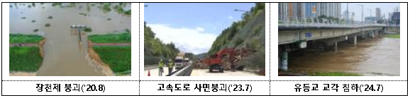 | ▲기후변화로 인한 집중호우 증가로 발생한 시설물 사고. 사진=국토부 제공 |