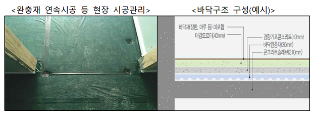 양주회천지구는 사후확인제가 적용되는 단지는 아니지만, 층간소음 차단성능 제고를 위해 사전 검토를 거쳐 선정한 바닥구조를 적용중인 현장이다.