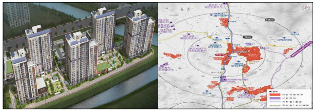 | ▲층간소음 사후확인제 1차 시범단지 양주회천 LH아파트 조감도(왼쪽)와 위치도. 사진=국토부 제공 |