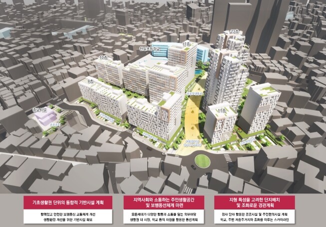 우선 3개 사업구역 간 통합적인 기반시설 계획을 통해 지역 일대 생활환경을 개선하는데 주안점을 뒀다. 특히 주민들이 필요로 하는 지역단위 공공시설 수요를 파악해 교통, 생활 기반시설 등이 서로 연계되도록 계획했다.
