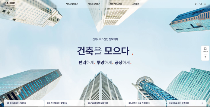 | ▲새단장한 건축HUB 메인화면. 사진=국토부 제공 |