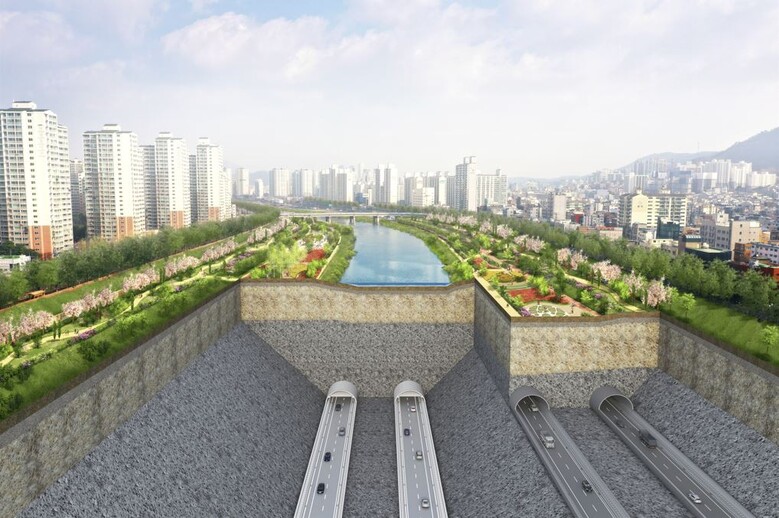 | ▲동부간선도로 지하화 사업 조감도(중랑천 횡단면)<사진제공=대우건설> |
