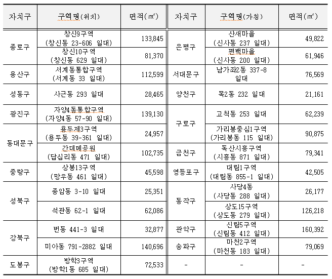 서울시는 지난 29일 '2022년 신속통합기획 주택재개발 후보지 선정위원회'를 열고 최종 후보지로 이같은 최종 후보지를 선정했다고 30일 밝혔다.