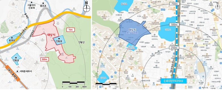 | ▲서울 서대문구 홍제동 9-81(왼쪽)과 사당동 63-1 일대 위치도. 사진=서울시 제공 |