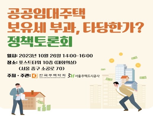 서울주택도시공사(SH공사)는 한국주택학회와 오는 26일 오후 2시 서울 중구 포스트타워 대회의실 10층에서 '공공임대주택 보유세 부과, 타당한가'를 주제로 정책토론회를 연다고 23일 밝혔다.