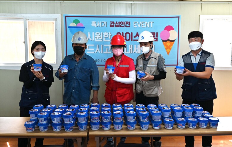 요진건설산업은 혹서기를 맞아 근로자의 열사병 등 온열질환 발생을 예방하기 위해 전 현장의 근로자 및 협력사 직원 등에게 아이스크림을 나눠주고, 업무 사기를 충전하며 휴식 및 소통의 시간을 가졌다.