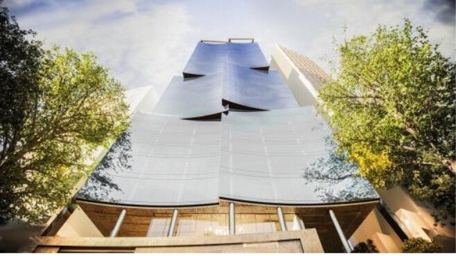 건축위원회는 건축물 전면을 여섯판의 유리마감 곡선으로 구성해 다채로운 입면 디자인을 계획했고, 도산대로 및 영동대로변의 스카이라인과 조화로운 높이계획을 수립했다.