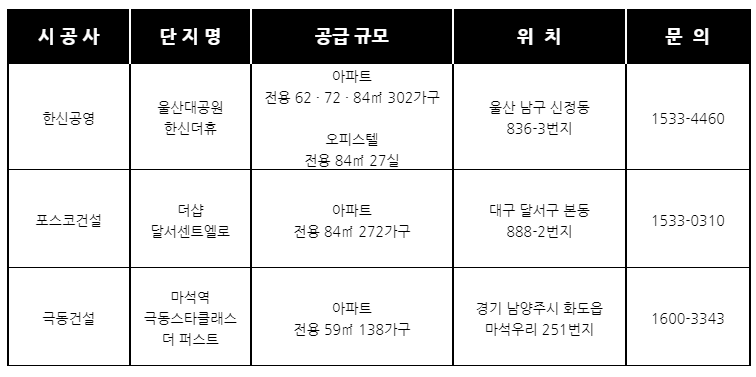 울산 ∙ 대구 ∙ 경기 등 신규 분양 활발