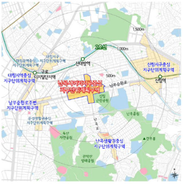 서울시는 이러한 잠재력을 바탕으로 지구중심의 자족도시기능 강화 및 난곡선 예정 역세권 활성화를 위해 지구단위계획 재정비를 추진하게 되었다고 설명했다.
