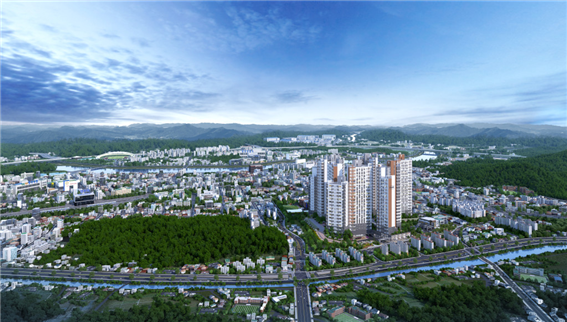 | ▲ HDC아이앤콘스, '영주 아이파크' 광역조감도 <자료제공=위드프로> |