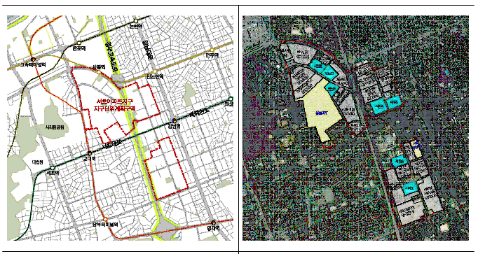 ▲서초 아파트지구 위치도(왼쪽)와 지구단위계획구역. 사진=서울시 제공
