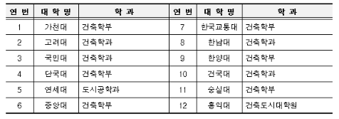 지난해 11월 29일부터 올해 1월 10일까지 서울시가 개최한 대학협력 모아주택·모아타운 프로젝트 참여대학 공모에는 전국 2~5년제 건축·도시·환경·조경 관련 대학(원) 중 이번 프로젝트와 수업연계 가능한 총 12개 대학(원)이 공모에 참여했다.