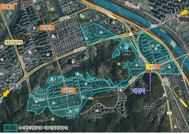 | ▲수서택지개발지구 지구단위계획구역 위치도. 사진=서울시 제공 |
