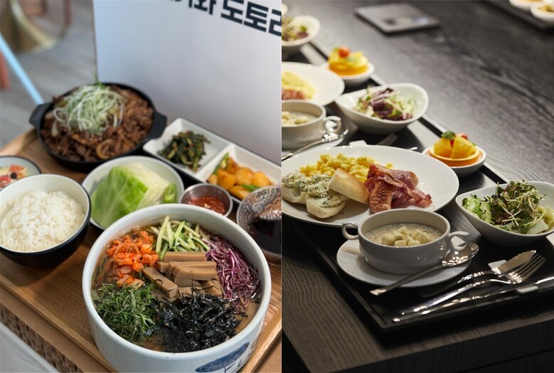 | ▲(왼쪽)풀무원에서 제공한 중식 (오른쪽)신세계 푸드에서 제공한 조식 |