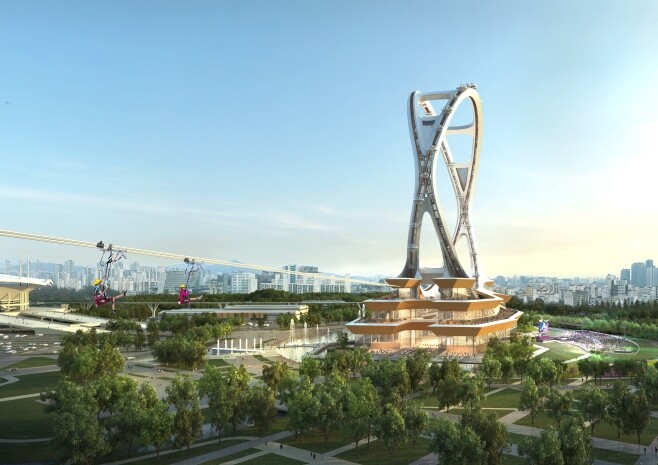 컨소시엄은 시가 발표한 기본방향을 반영하되 접근성과 사업비 등을 고려해 월드컵공원 내 평하의공원 난지 연못 일대에 두개의 고리가 교차하는 형태의 대관람차 '서울 트윈아이'를 제안했다. 총사업비는 9102억원 규모다.