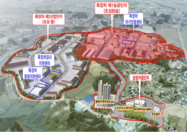 아울러 지역 주민과 입주 근로자에게 편리한 주거·생활환경을 제공하기 위해 다부처 지원사업을 연계한 상생거점단지도 조성할 예정이다. 다부처 지원사업에서 농식품부는 복지센터, 복지부는 보건소, 한국토지주택공사(LH)는 일자리 연계 행복주택 100호 조성을 맡는다.