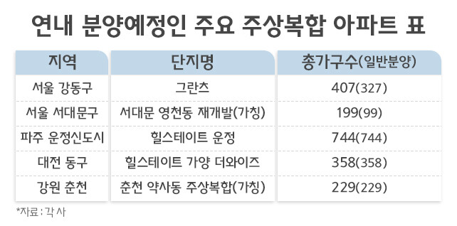 연내 서울 강동, 파주 운정, 대전 동구 등에서 주상복합 나와 귀추 주목