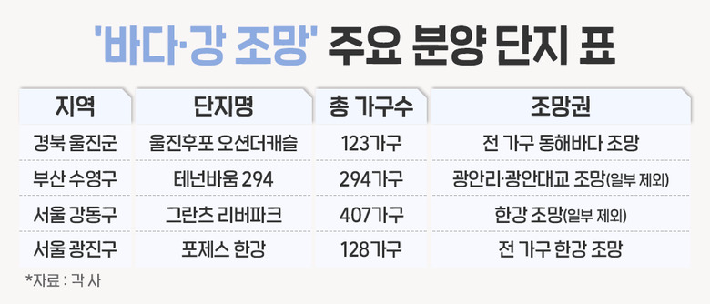 실제 지난해 분양시장에서는 바다, 강, 호수 조망권을 갖춘 신규 단지가 치열한 청약 경쟁을 이어갔다. 특히 서울에서는 한강 조망을 갖춘 아파트로 청약 쏠림이 계속됐다.