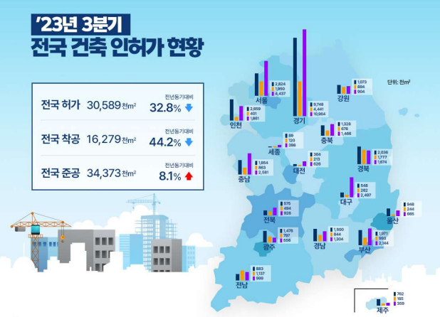 | ▲2023년 3분기 전국 건축 인허가 현황. 그래픽=국토부 제공 |