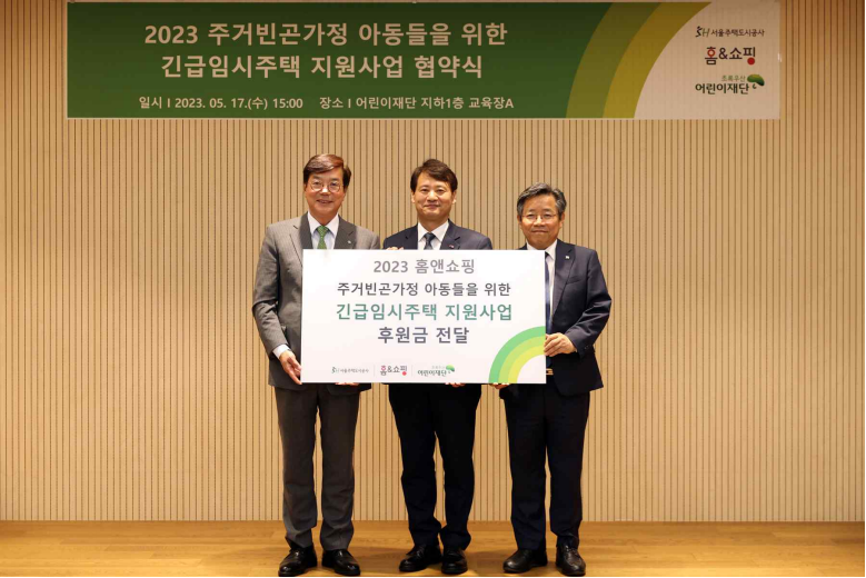서울주택도시공사(SH공사)는 홈앤쇼핑·초록우산어린이재단과 17일 '긴급임시주택주거위기가구 지원을 위한 업무협약'을 맺고 함께 협력하기로 했다고 18일 밝혔다.