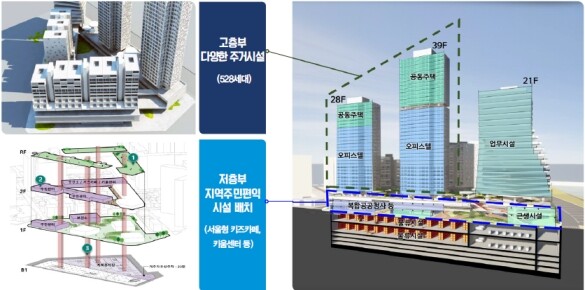 계획안은 물류시설을 100% 지하화해 소음 분진 등 주민 우려를 최소화하고, 지상부에는 최고 39층 규모로 아파트‧오피스텔과 업무시설, 판매시설, 공공시설 등 다양한 용도의 시설을 채우기로 했다. 특히 중랑천과 가까운 부지 동측에는 중랑천 수변의 풍경을 바꿀 세련된 건축디자인의 랜드마크 타워를 세울 예정이다.