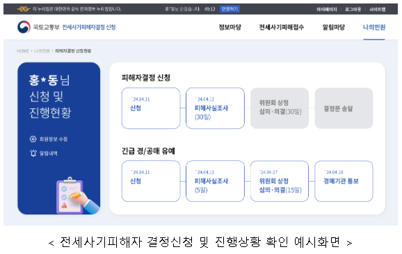 | ▲전세사기 피해자 결정신청 및 진행사항 확인 예시화면. 사진=국토부 제공 |
