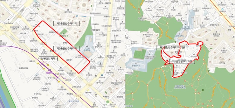 | ▲서울 동대문구 답십리동 489일대(왼쪽)와 서대문구 홍제동 322일대 위치도. 사진=서울시 제공 |