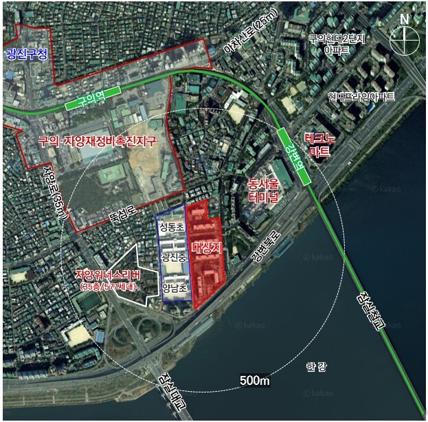 ▲서울 광진구 자양동 695번지 일대 자양한양아파트 위치도. 사진=서울시 제공