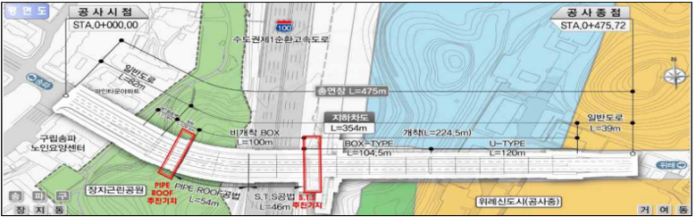 SH공사는 사업시행자로서 장지동길의 시점과 종점 약 254m 구간에 터널형 방음벽을 설치해 도로변 주거 단지의 소음 피해를 해결하고 기후 변화로 인해 빈번해진 폭우, 폭설 상황에서도 안전하게 지하차도를 이용할 수 있도록 했다고 설명했다.