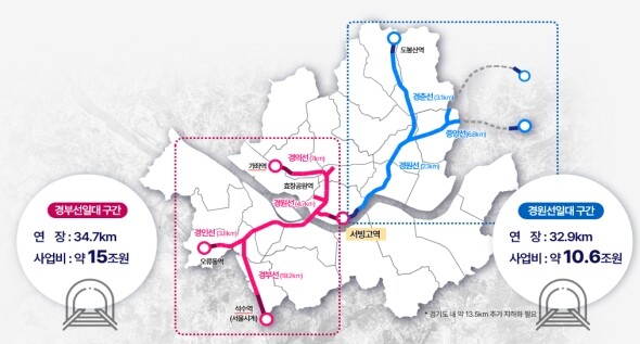 이번에 국토부에 제안할 서울 시내 철도 지하화 구간은 경부선 일대 34.7㎞, 경원선 일대 32.9㎞, 총 67.6㎞로 총 39개 역사를 포함한다. 다수노선을 공유하는 복잡한 철도망 특성과 지상~지하 연결 가능 여부 등 면밀한 기술적 검토를 바탕으로 지하화가 실현 가능한 대상 구간을 최종적으로 선정했다는 게 시 측의 설명이다.