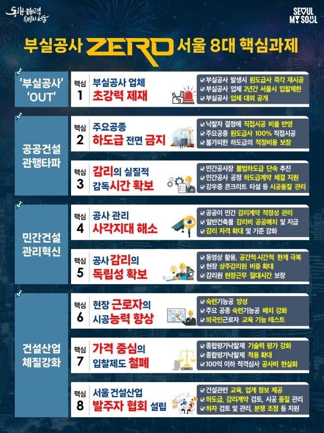| ▲'서울형 건설혁신 대책' 8대 핵심과제 개요. 사진=서울시 제공 |