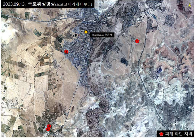 | ▲지난 9월 13일 지진이 발생한 모르코 마라케시 지역 국토위성영상 갈무리. 사진=국토부 제공 |
