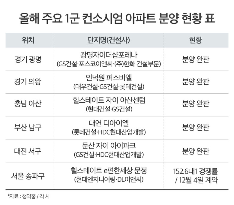 주택시장에서 대형건설사가 뭉친 컨소시엄 아파트가 꾸준한 흥행을 이어가고 있다.
