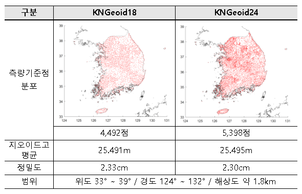 | ▲국가 지이오드모델 2018년(왼쪽)과 2024년 버전 비교표. 사진=국토부 제공 |