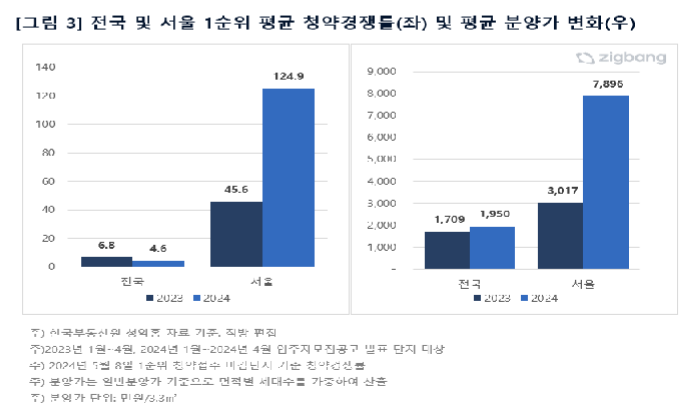 최고급 한강을 품은 아파트로 3.3㎡당 1억이 넘는 분양가에 공급된 광진구 포제스한강이 평균 분양가를 끌어올린 가운데 서초구와 강동구 등 고급주거지 위주로 분양이 진행되며 전체 분양가가 높아졌다. 고급주거지의 희소가치와 상징성 등에 따라 높은 분양가에도 수요가 몰린 것으로 분석된다. 또한 서초구 메이플자이는 분양가상한제가 적용되어 3.3㎡당 6,831만원에 공급되자 가격경쟁력까지 높게 평가받으며 성공적으로 청약접수를 마감했다. 81세대 모집에 3만 5,000명 이상의 청약수요자들이 몰려, 1순위 평균 442대 1의 경쟁률을 기록했다.