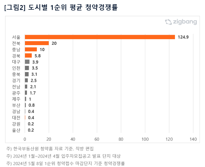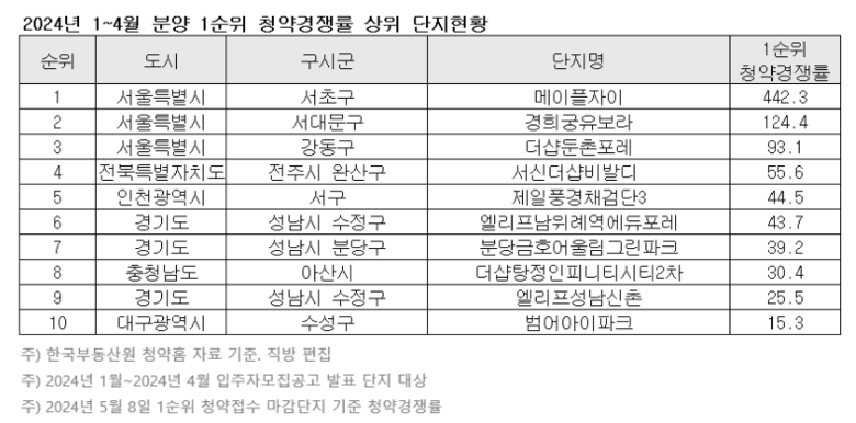 그 외 경희궁유보라(서울 서대문구)가 124대 1, 더샵둔촌포레(서울 강동구)가 93대 1로 그 뒤를 이으며 서울 청약시장 강세를 주도했다.