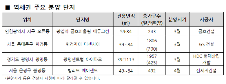 GS건설은 서울 동대문구 휘경동 일대 휘경3 재정비 촉진구역 주택재개발정비사업을 통해 ‘휘경자이 디센시아’를 3월 말 분양할 예정이다. 지하 3층, 지상 최고 35층, 14개 동 총 1806가구 가운데 39∼84m² 700가구가 일반분양 물량이다. 회기역(1호선, 경의중앙선, 경춘선)과 외대앞역(1호선)을 모두 끼고 있는 더블역세권 입지를 갖췄따.